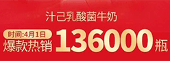 公主购超级爆款汁己乳酸菌牛奶上线即卖爆,销量突破136000瓶。